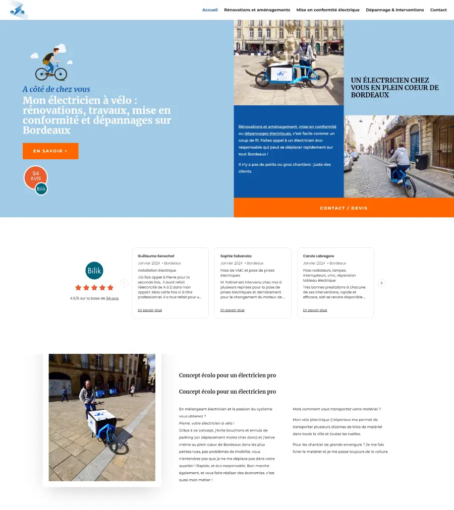 Vous n’aurez pas le choix du design, pour pouvoir proposer une offre à si bas prix, c’est parce que je vais pouvoir aller vite sans avoir besoin d’échanger avec vous sur la maquette. Une fois livré, le site vous appartiendra entièrement et vous pourrez à loisir modifier des informations dessus, changer des photos ou encore le confier à un autre prestataire si vous le souhaitez. (ou encore me demander un devis pour aller plus loin, mais on sort du cadre de l’offre de ce site).
